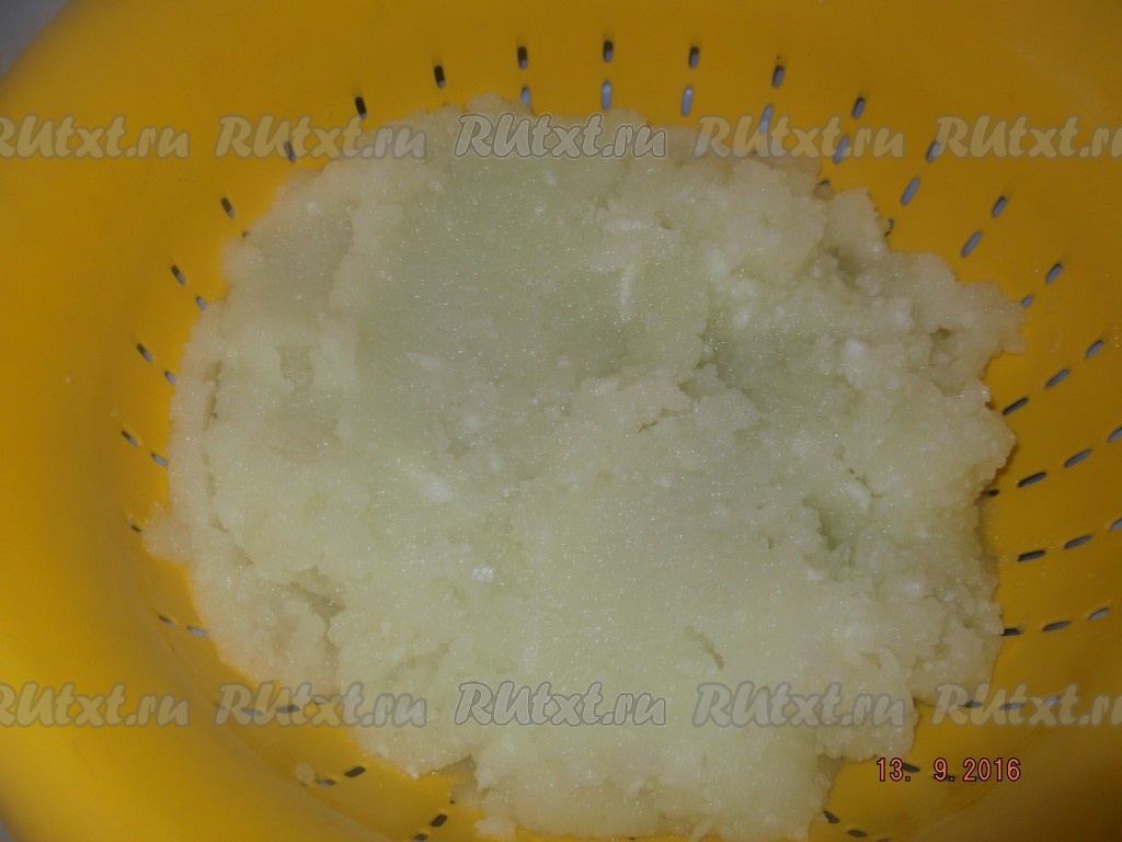 Затем перекладываем кабачковую массу из блендера в сито или дуршлаг и оставляем минут на 30, чтобы дать стечь соку.