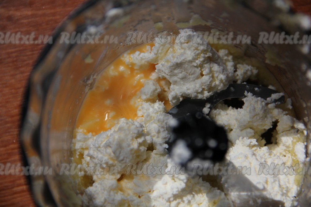 Для приготовления начинки для драников тщательно растереть (или пробить блендером) творог с яйцом, посолить и поперчить по вкусу.