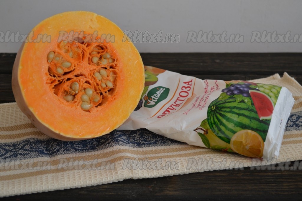 Подготовить все необходимые ингредиенты. Я использовала фруктозу, можно смело заменить обыкновенным сахаром. А тыкву лучше выбрать сладкую и зрелую. У меня сорванная тыква лежала более двух недель, кожица стала мягкой, очень легко срезалась.