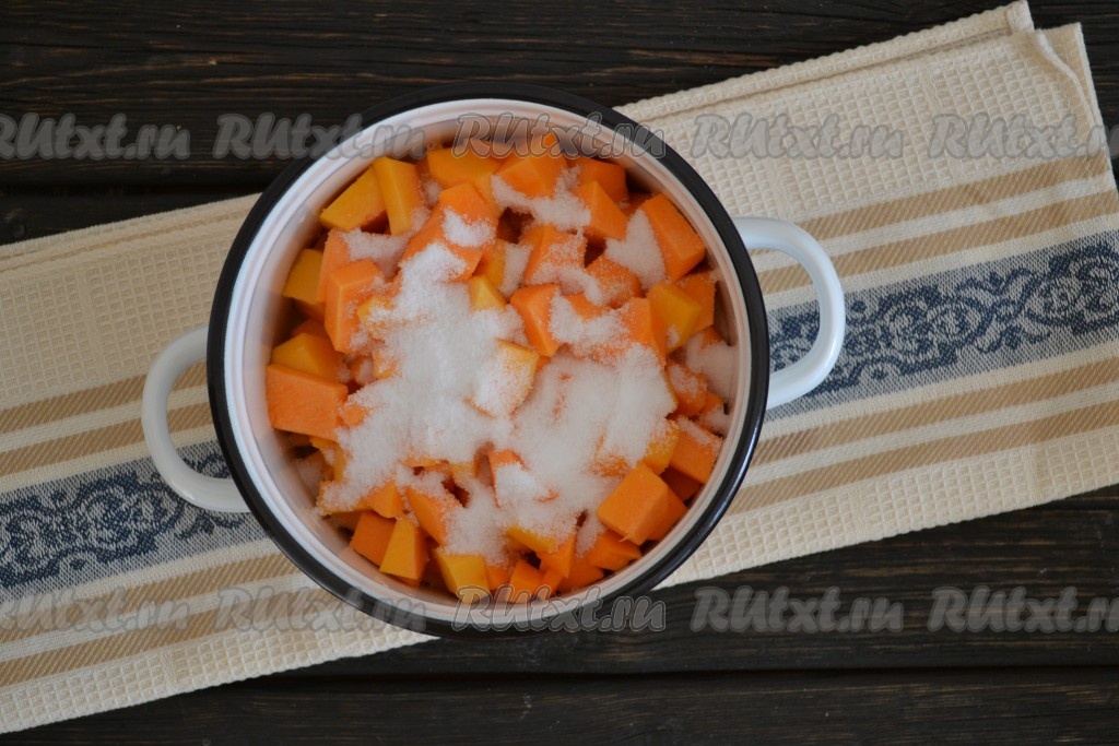 Сахар за это время практически растает, тыква выделит немного сока.