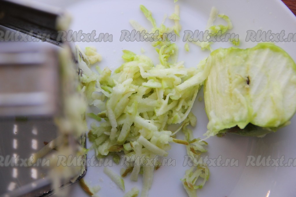 Натираем яблоко на крупной тёрке, не затрагивая сердцевину. Я взяла яблоко с кислинкой, мне так больше нравится.