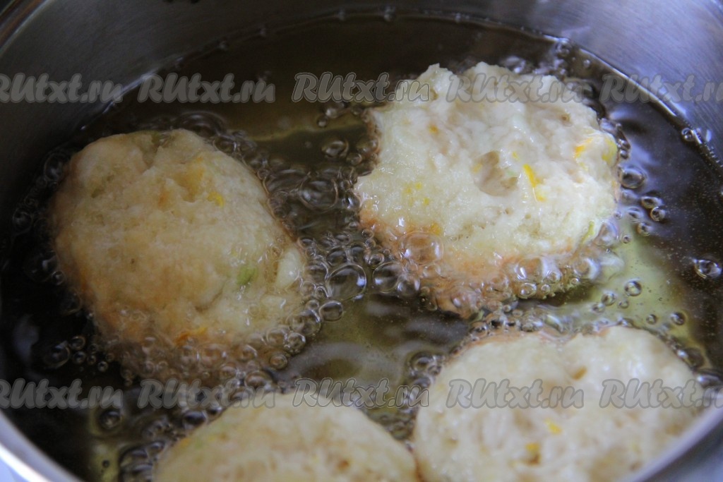 В казане (или толстостенной кастрюле) разогреваем растительное масло. Масла желательно добавить столько, чтобы при жарке пончики не касались дна. Десертной ложкой набираем тесто и, помогая пальцем, выкладываем тесто в кипящее масло. Пончики с яблоками жарим на среднем огне до золотистого цвета со всех сторон. Первый пончик достаньте и обязательно разрежьте. Так вы поймёте - сырой он или готов. Дальше вы будете ориентироваться уже по времени приготовления.