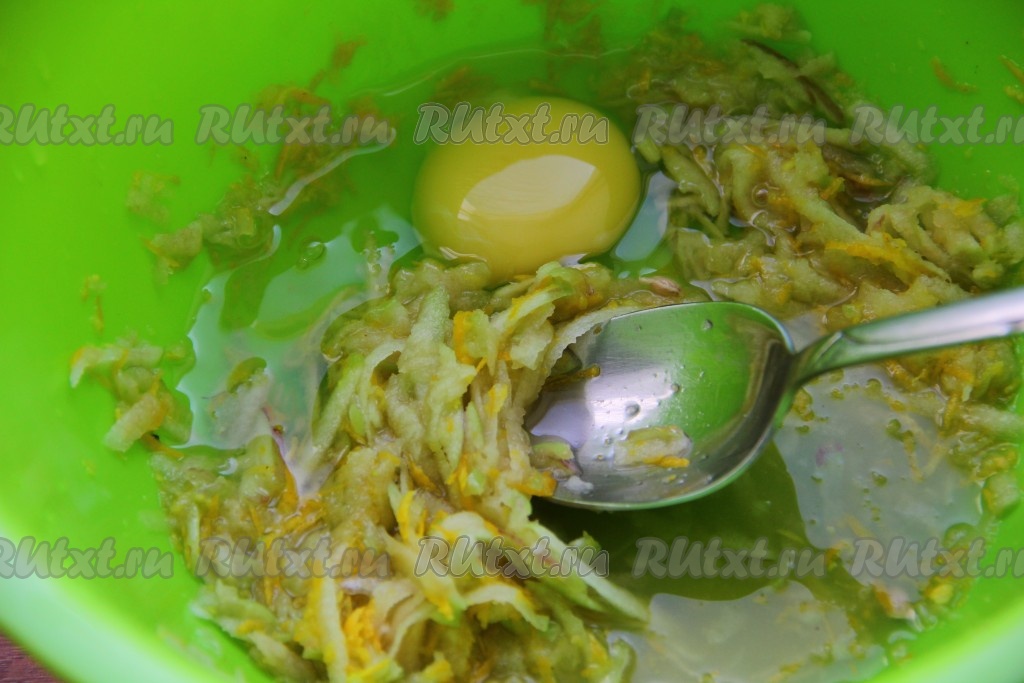 В миске смешиваем натёртое яблоко и сырое яйцо, по желанию, добавляем немного цедры лимона.