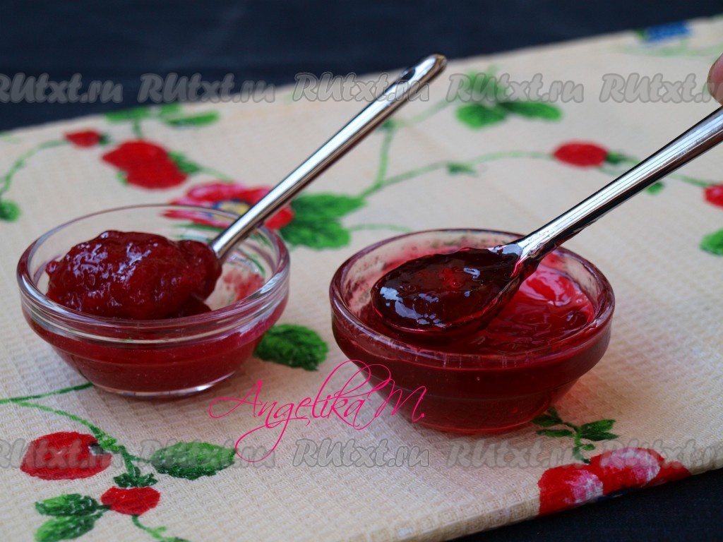 Горячий мармелад из кизила выливаем в банку. Вначале он будет жидким, но потом загустеет. На фото у меня желе и мармелад на утро следующего дня, заготовки стояли на столе в кухне. Мармелад, который закручен герметично, хранится при комнатной температуре. Вскрытую банку ставим в холодильник.