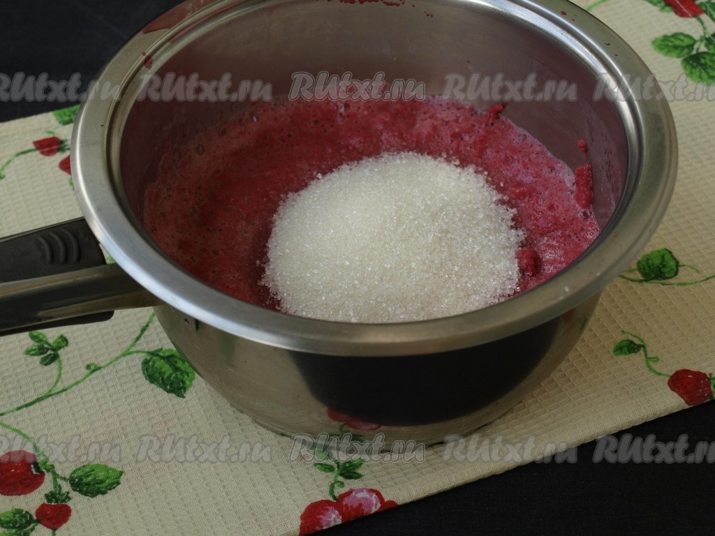 К полученной массе добавляем 150 грамм сахара. Благодаря тому, что сок мы слили, нам не придётся ничего уваривать.