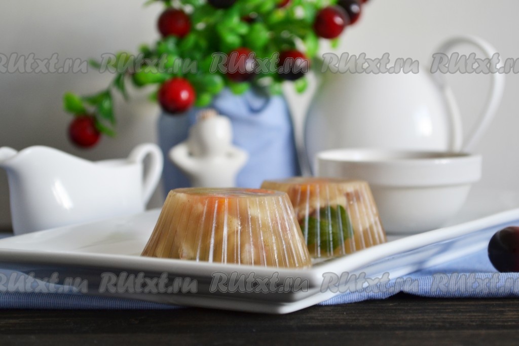 Можно залить холодец в порционные формы - будет очень красиво и удобно кушать. Но для этого нужно мясо нарезать меньшими кусочками.