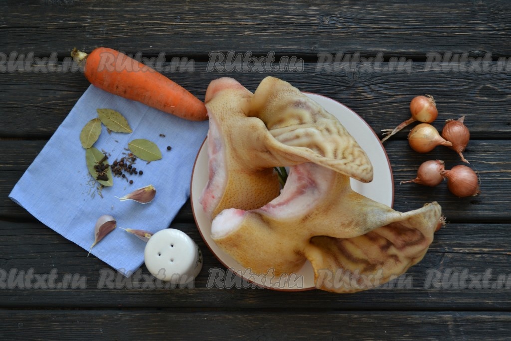 Холодец - одно из самых популярных рецептов славянской кухни. Из чего только не готовят это блюдо: из курицы, говядины, свинины, индюка и т.д. Используют различные части мяса или субпродуктов. Предлагаю приготовить вкуснейших холодец из свиных ушей. Он прекрасно желируется без вспомогательных веществ. Если залить приготовленный холодец в силиконовые формы или формовочное кольцо - получается неимоверно красиво и можно подать гостям. Это ароматное и вкусное блюдо, наверняка, понравится многим!