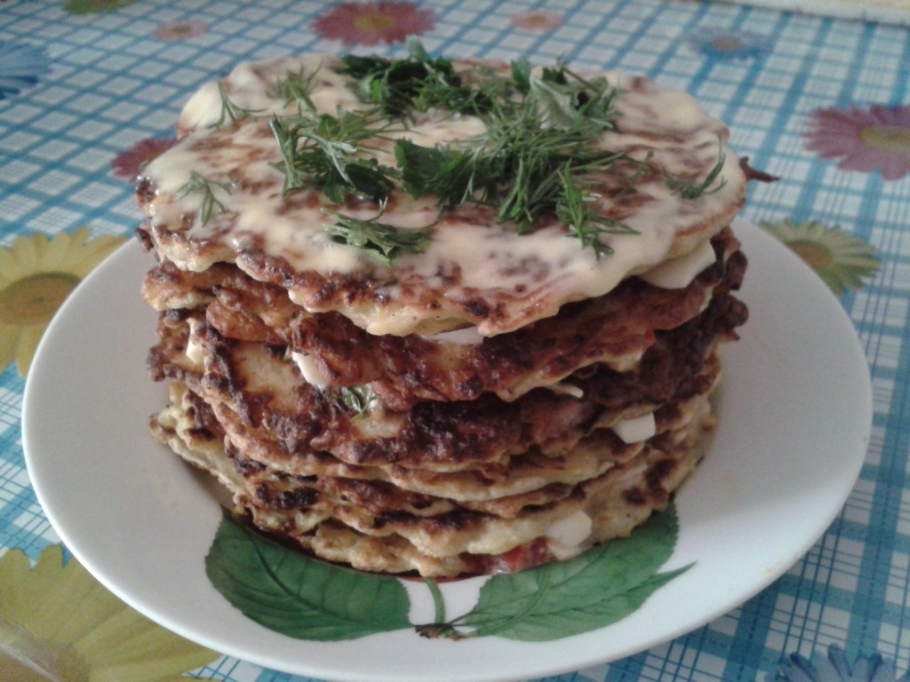 Жарить кабачково-картофельные блинчики с двух сторон до золотистой корочки. Готовые блинчики складывать на блюдо, чтобы они остыли.