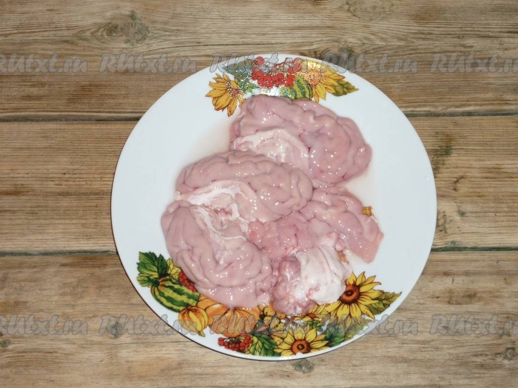 Снять с них пленку и удалить крупные кровяные прожилки.