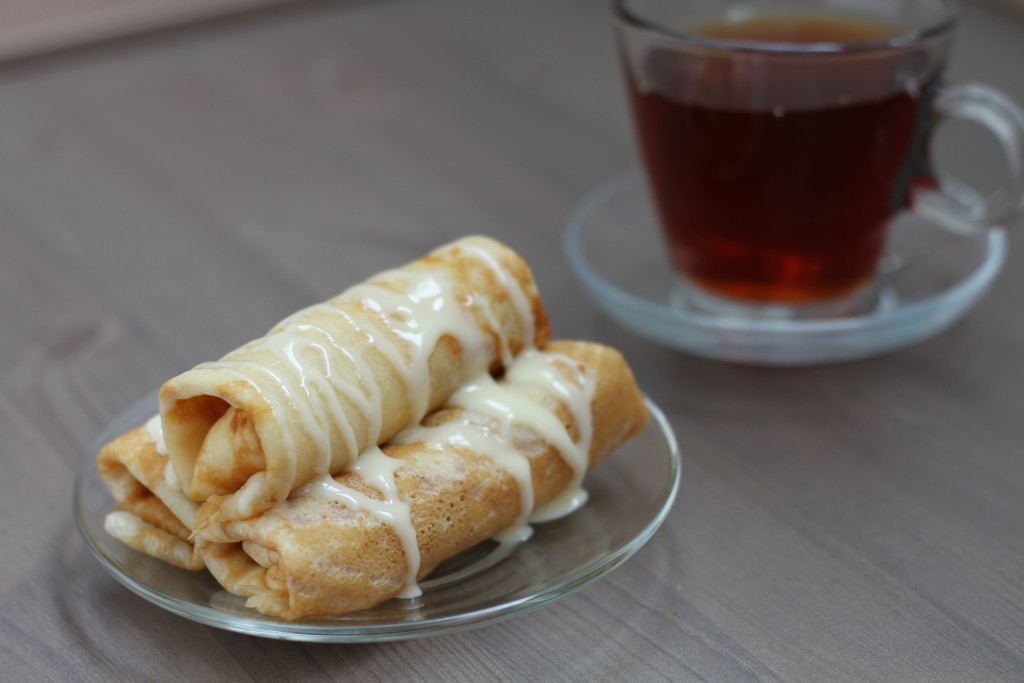 Предлагаю приготовить на завтрак тоненькие блинчики с творогом и сгущенкой. Блины получаются нежными, тают во рту. Попробуйте!