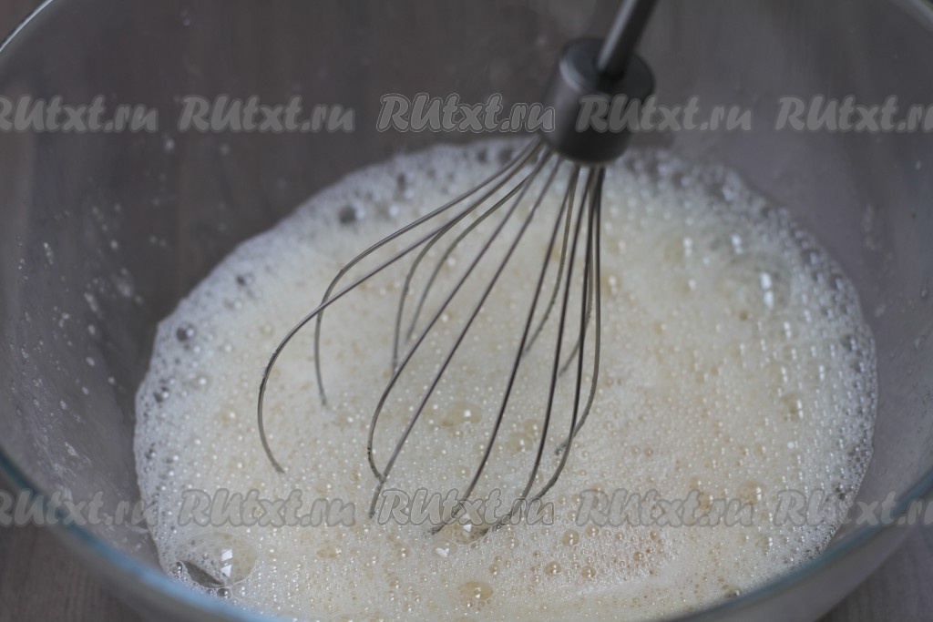 Тщательно взбейте яйца с солью и сахаром до образования пены.