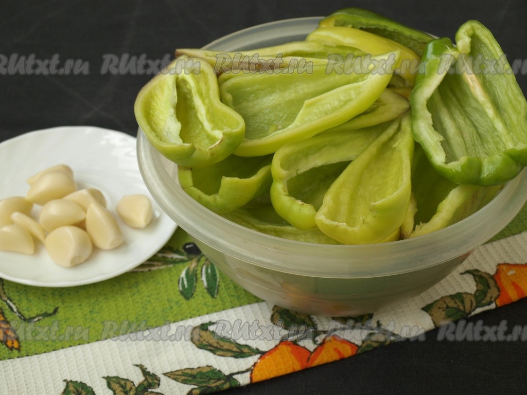 Болгарский перец нужно разрезать пополам и удалить семена. С острым перцем можете поступить на своё усмотрение: семена можно также удалить, а можно и оставить, тогда аджика будет более жгучей. Очистить чеснок.