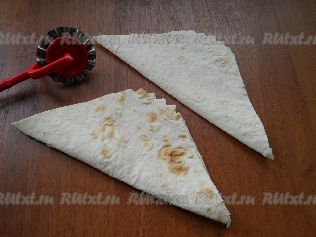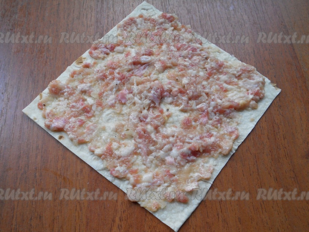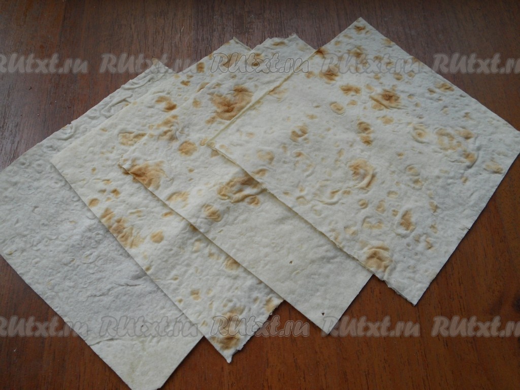 Лаваш нарезать на квадраты размером 15х15 сантиметров.