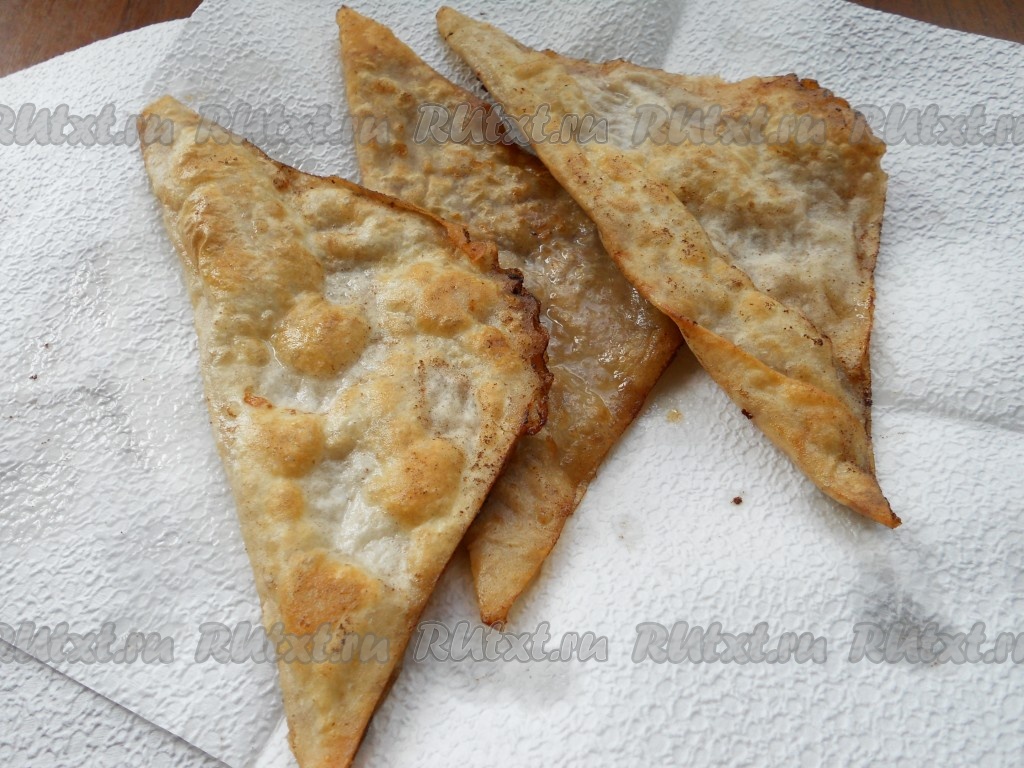 Готовые ленивые чебуреки перекладывать со сковороды на бумажные полотенца, чтобы убрать лишнее масло.