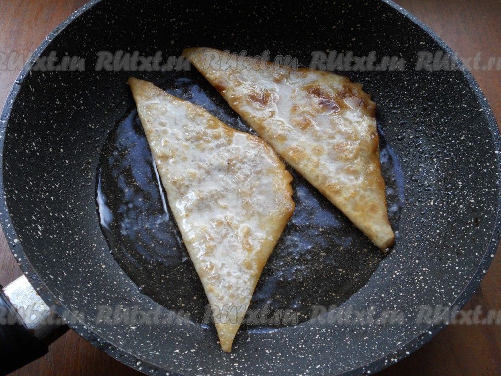 Затем чебуреки выложить на блюдо. Постепенно пожарить все чебуреки из лаваша.
