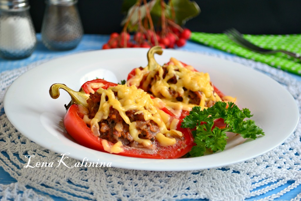Готовые необычайно вкусные перцы, фаршированные мясом без риса, подать к столу в горячем виде.