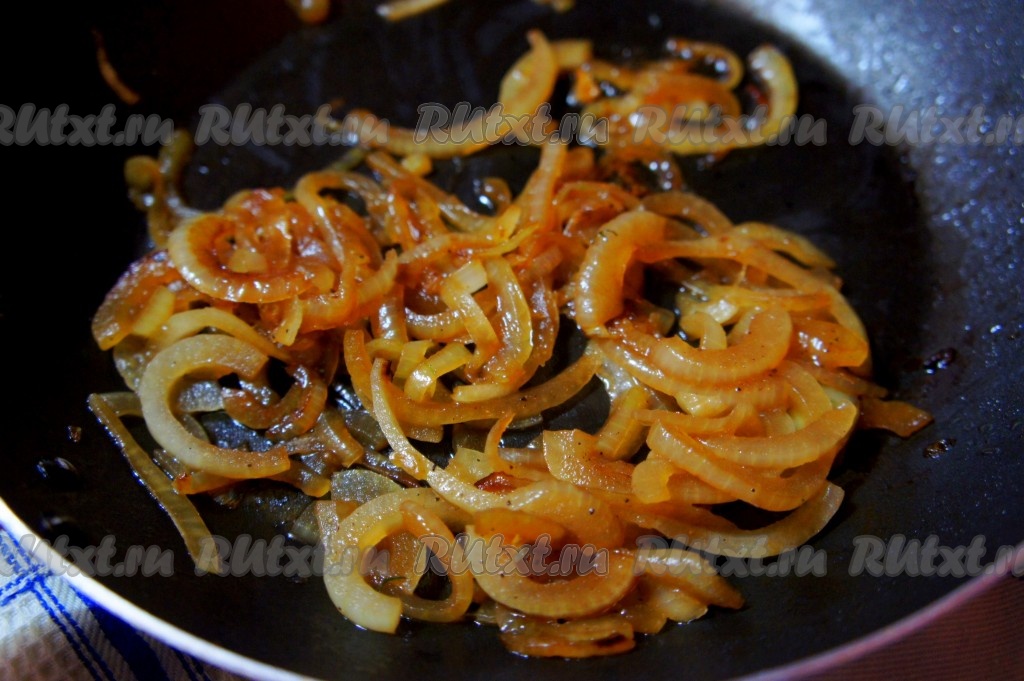 Лук нарезать полукольцами, обжарить с добавлением растительного масла, добавить мёд, тщательно перемешать, жарить ещё 1 минуту и снять с огня. Карамелизированный лук готов!
