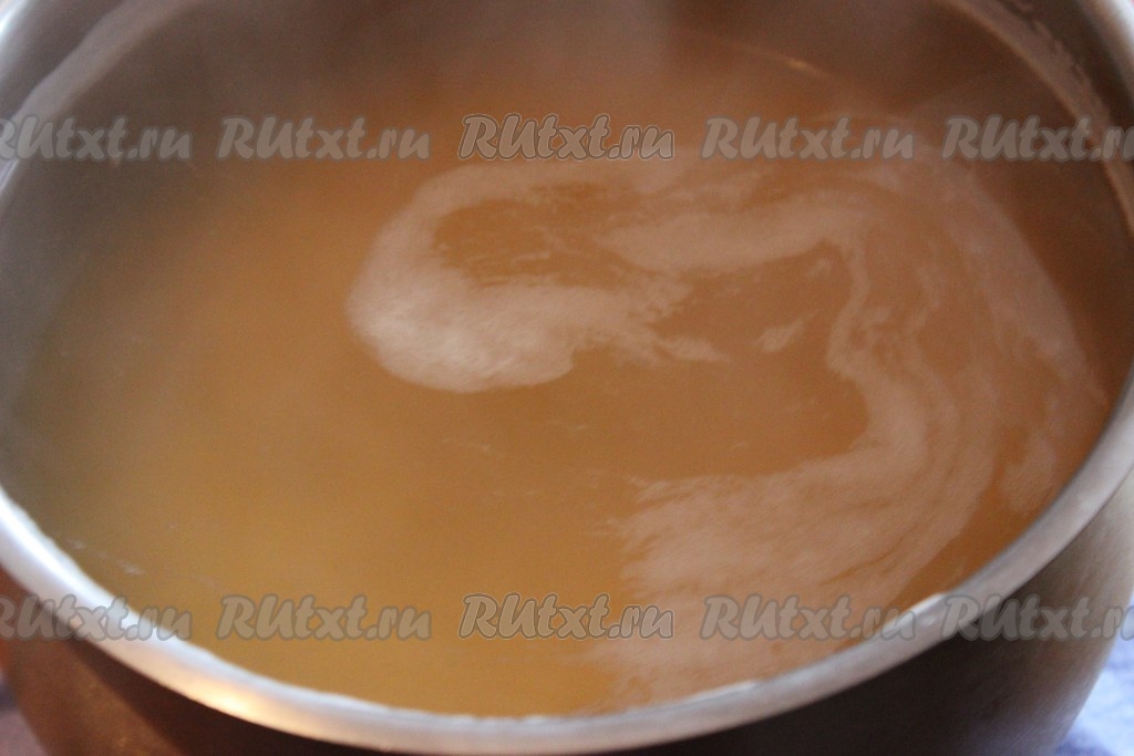 Далее переложить горох в кастрюлю, залить чистой холодной водой и поставить на сильный огонь. После того как вода закипит, огонь убавить до минимума и варить горох примерно 1 час, снимая образовывающуюся пену.