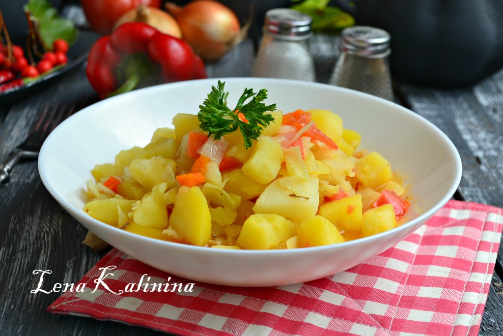 Хочу предложить вам отличное повседневное блюдо - картофель, тушеный с овощами в мультиварке. Блюдо - очень вкусное, его можно подать с мясом, рыбой, салатом из свежих овощей или соленьями. Готовится картофель с овощами совершенно просто: нужно лишь все нарезать, а все остальное сделает за вас чудо-техника.
