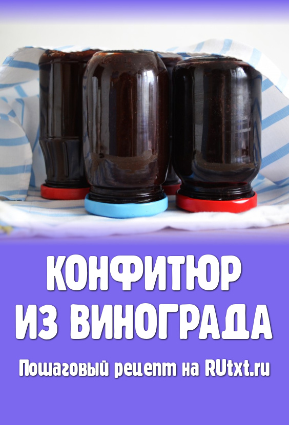 Разложить конфитюр из винограда по чистым стерильным баночкам и закатать прокипяченными крышками. Перевернуть вверх дном и оставить до полного остывания. Хранить можно как в кладовой, так и в темном, холодном подвале.