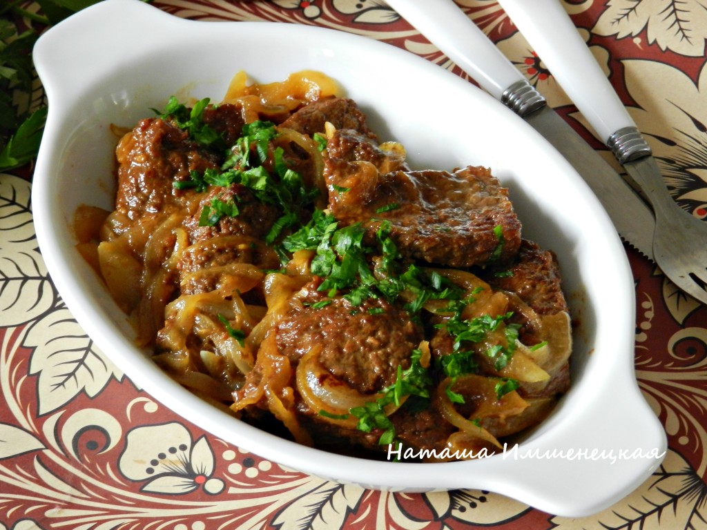 Перемешать и готовить еще 5-7 минут до мягкости лука. В этом блюде лук не должен полностью потушиться, а немного похрустывать.