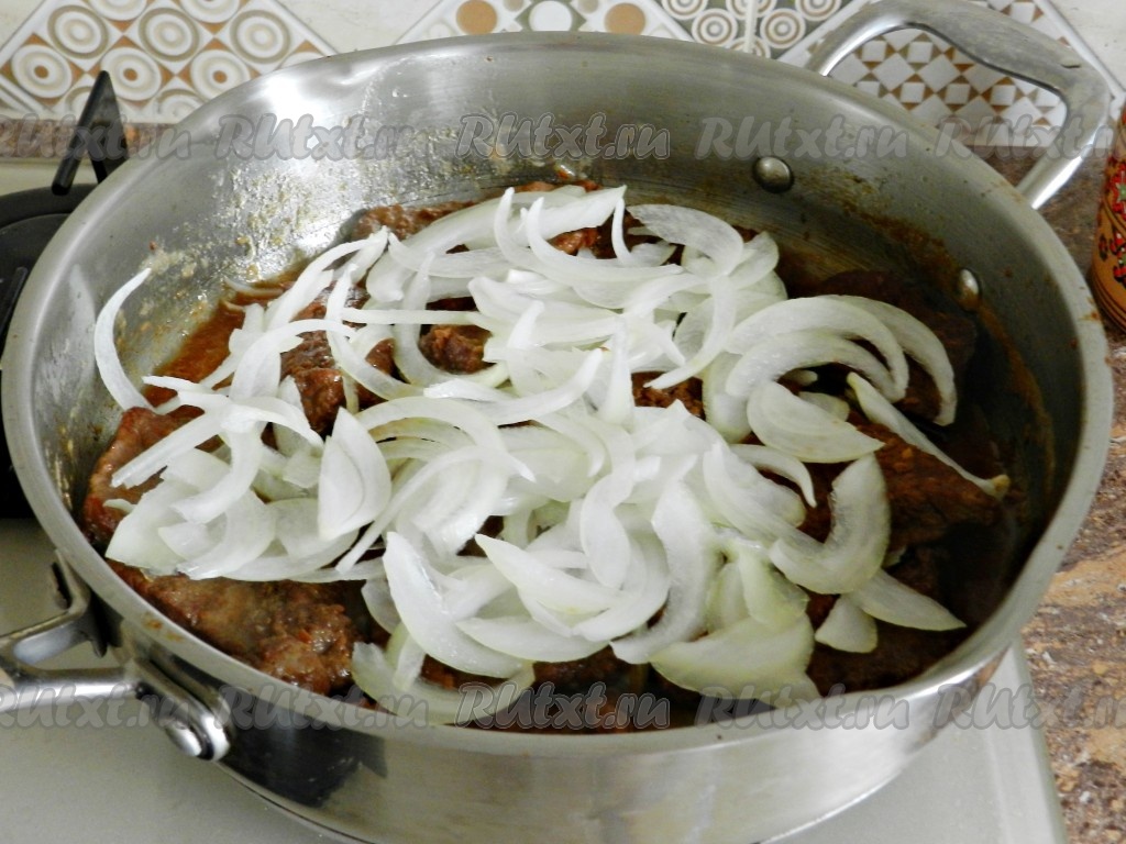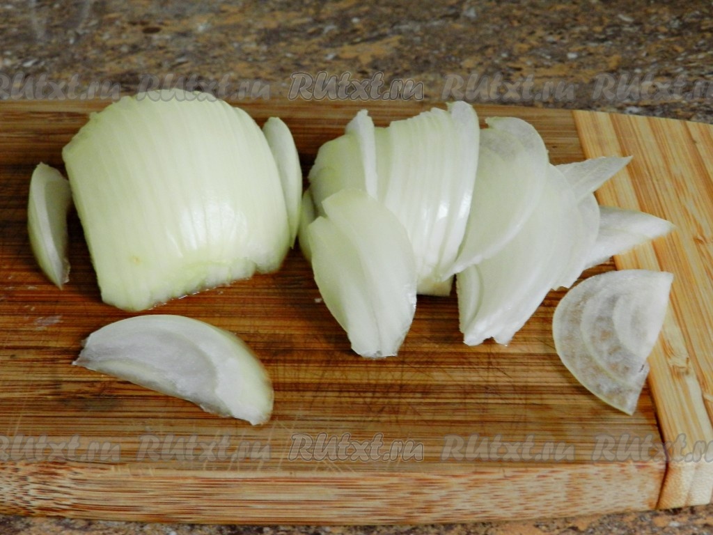 Репчатый лук нарезать "по-восточному", то есть вдоль луковицы.