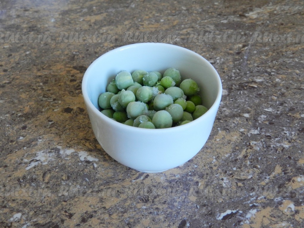 Зеленый горошек перед варкой не размораживать. Если у вас нет замороженного горошка, можно использовать консервированный.
