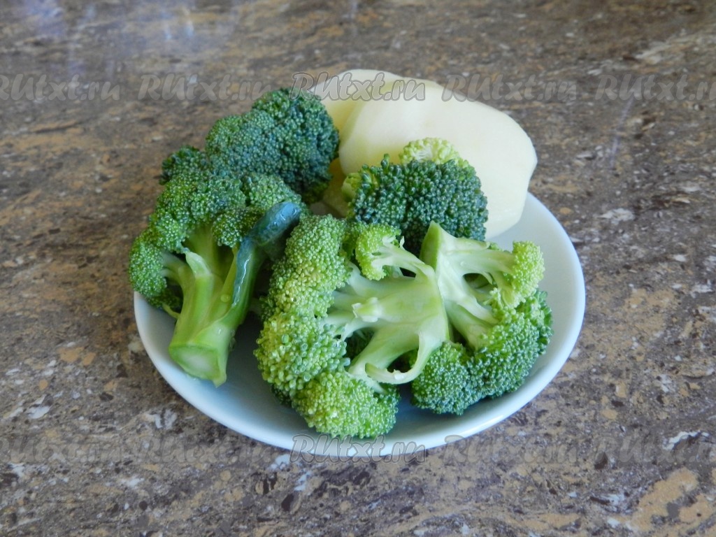 Картофель очистить, брокколи вымыть и разобрать на соцветия.