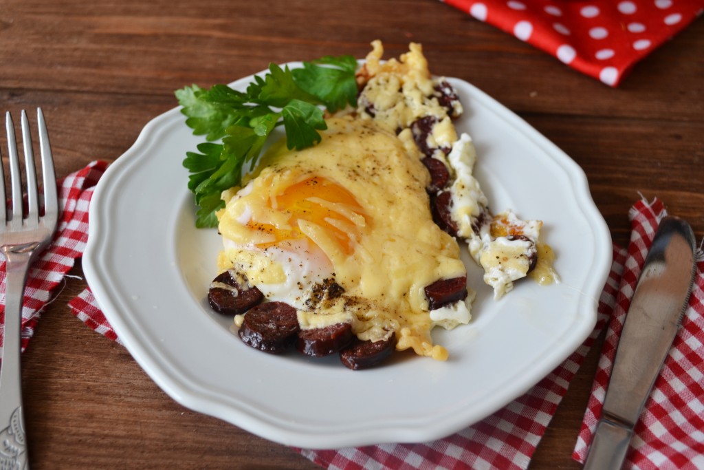 Многие на завтрак любят кушать яичницу. Ведь готовится она быстро, а получается вкусной. Это, как "классика", - не надоедает. Предлагаю немного разнообразить утреннее меню, приготовив яичницу с колбасой и сыром. Блюдо получается сытным, с интересным, насыщенным вкусом. Такая яичница особенно понравится сильной половине человечества и тем, кто любит вкусно и плотно покушать.