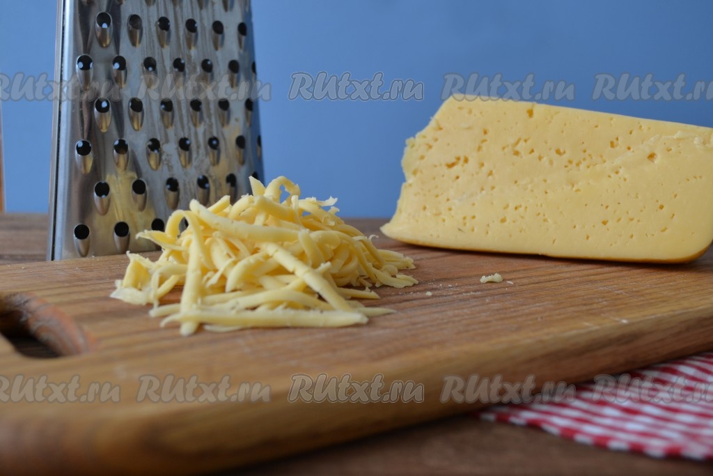 На средней терке натереть сыр. Можно использовать и сыры твёрдых сортов, и более мягкие сыры: фету, брынзу или сыр "Здоровье".
