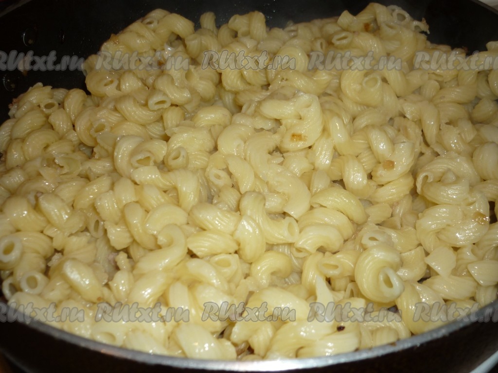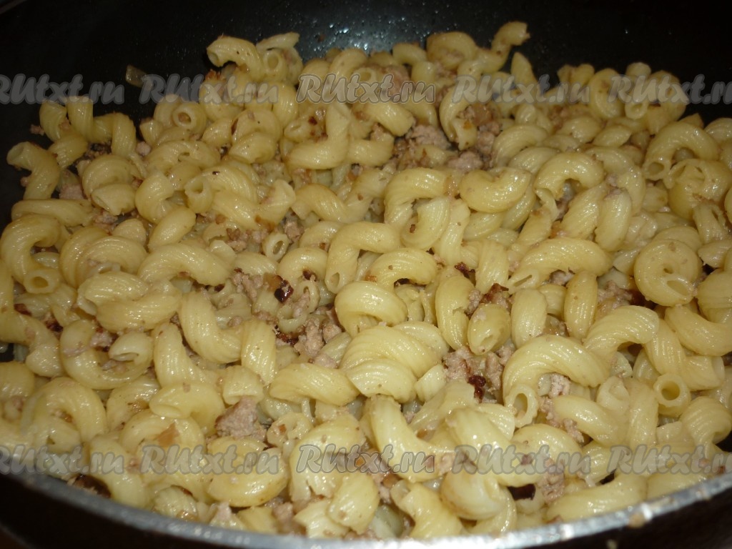 Макароны выложить к готовому фаршу.