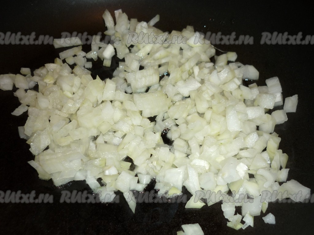 Лук очистить, вымыть и нарезать мелкими кубиками.