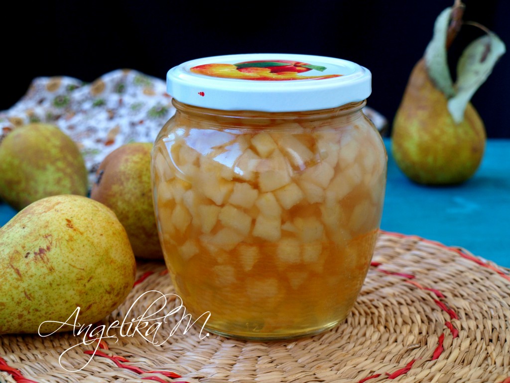 В подготовленную стерильную банку вылить готовое варенье из груш, закрутить прокипяченной крышкой.