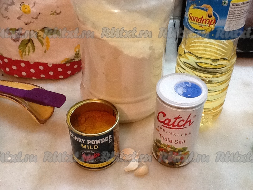 В куриный фарш добавляем яйцо, соль, порошок карри, пропущенный через пресс чеснок и хорошо перемешиваем. Затем добавляем чуть водички (или молочка) и муку, перемешиваем еще раз до однородной массы.