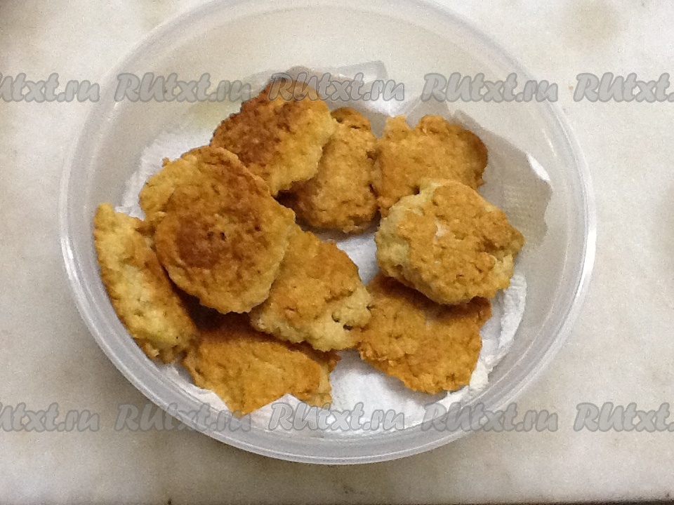 Перекладываем в емкость на бумажные полотенца - чтобы удалить лишнее масло. Накрываем крышкой и жарим следующую партию.