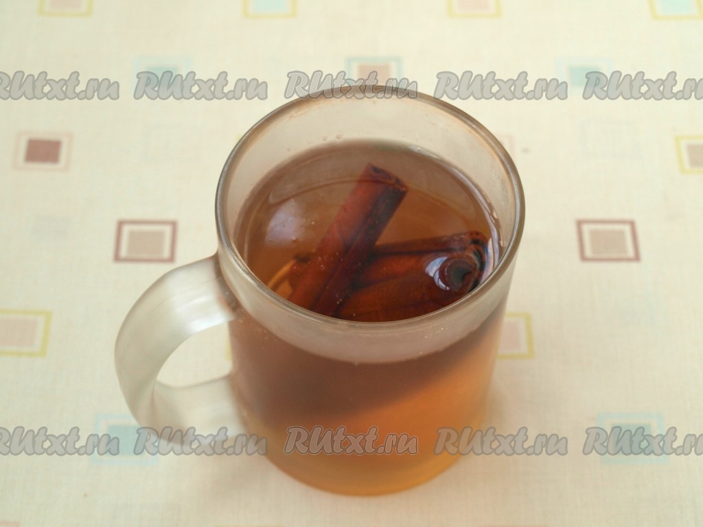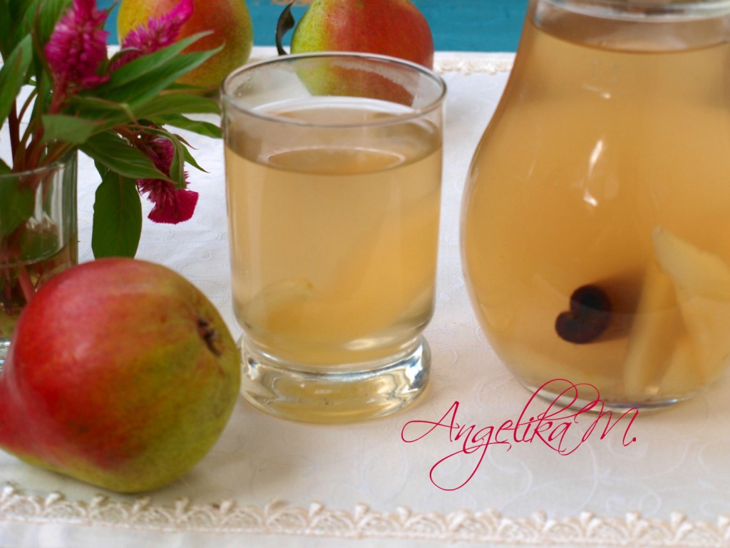 Пить вкусный компот из груш с корицей в остывшем состоянии.