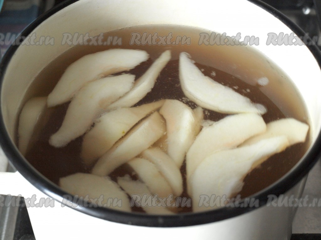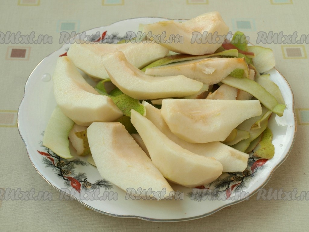 Груши очистить от шкурок, нарезать дольками.