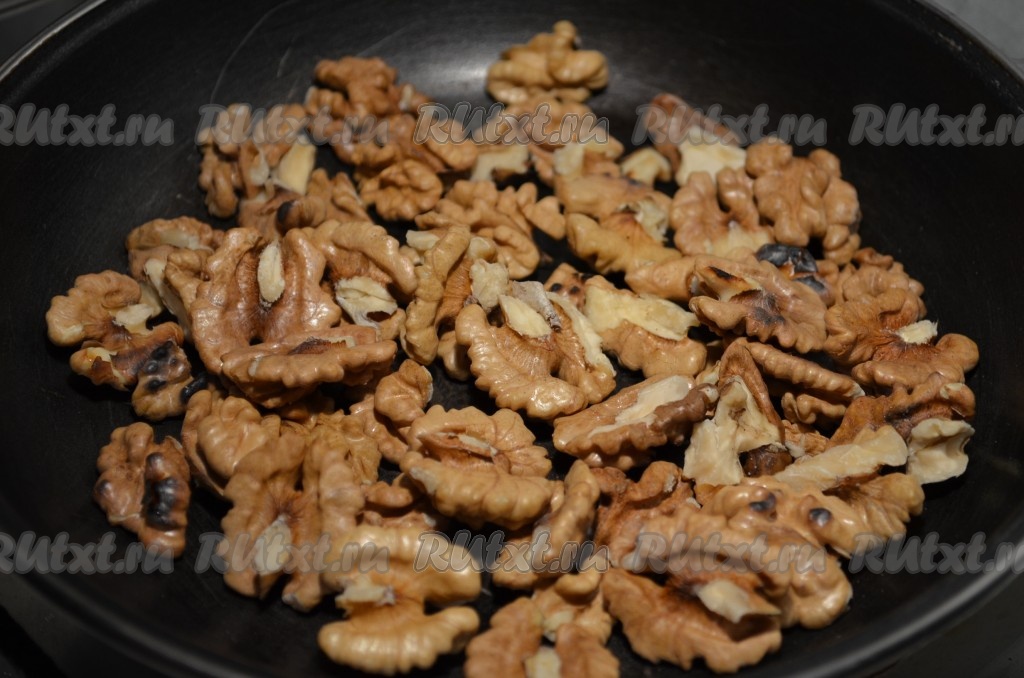 Грецкие орехи обжариваем на сухой сковороде.