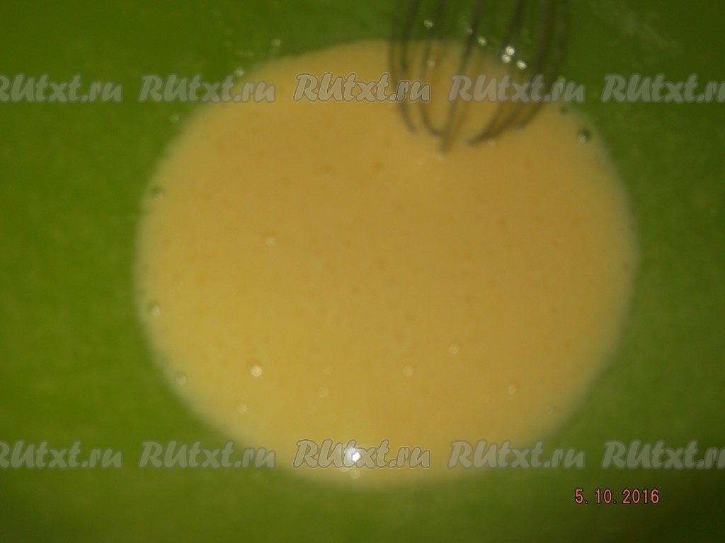Венчиком слегка взбиваем яйца с сахаром до получения однородной массы.