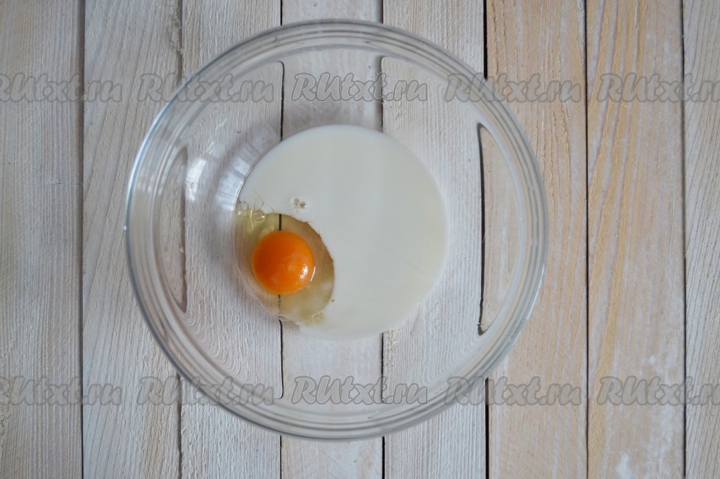 Соединить яйцо с молоком. Немного разболтать вилкой.