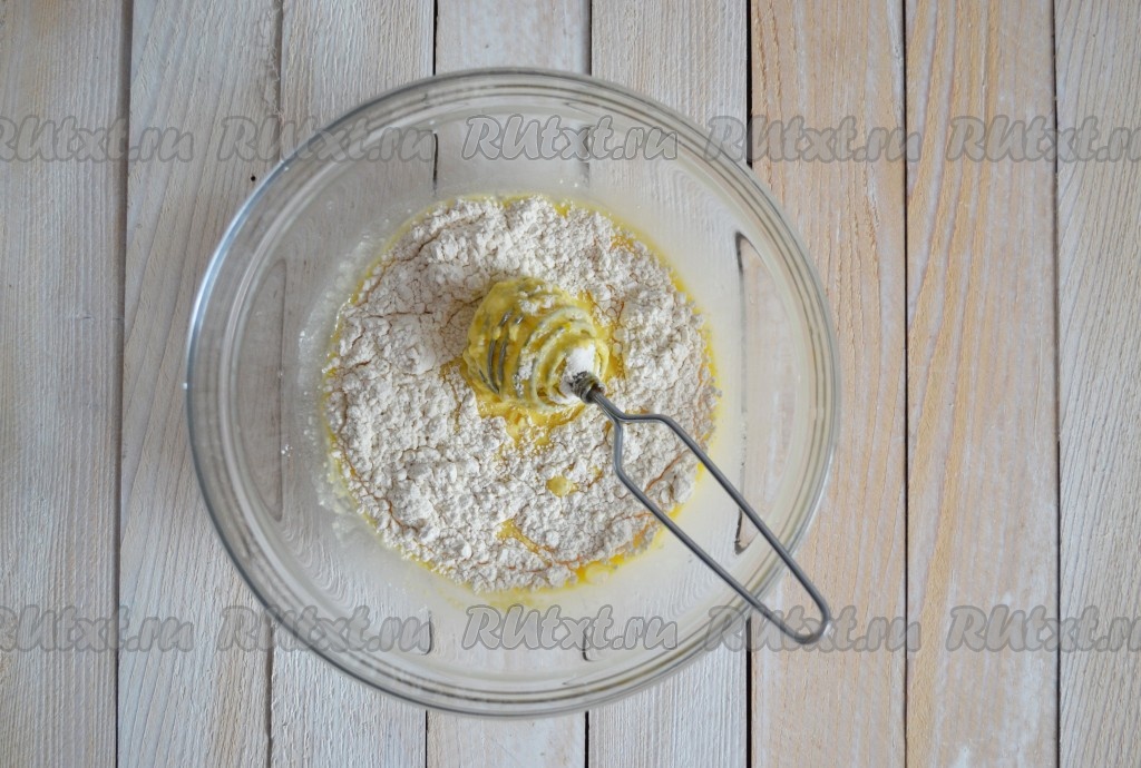 Всыпать щепотку соли и всю порцию муки. Тщательно перемешать. Кляр должен получиться однородным, без комочков, а по консистенции напоминать сметану.