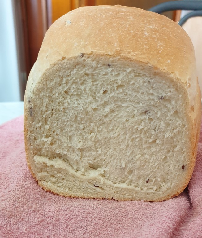 Французский хлеб, испеченный в хлебопечке, очень хорошо нарезается, не крошится. По желанию в этот хлеб можно добавлять различные травы, например, смесь прованских, итальянских или базилик, майоран по своему вкусу.