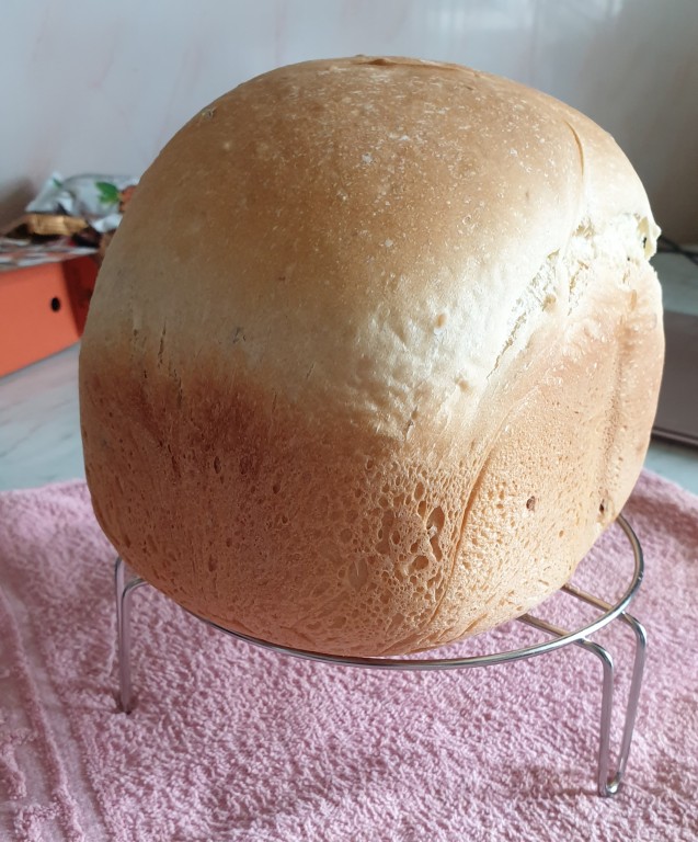 По завершении программы французский хлеб извлечь из ведёрка хлебопечки, остудить.