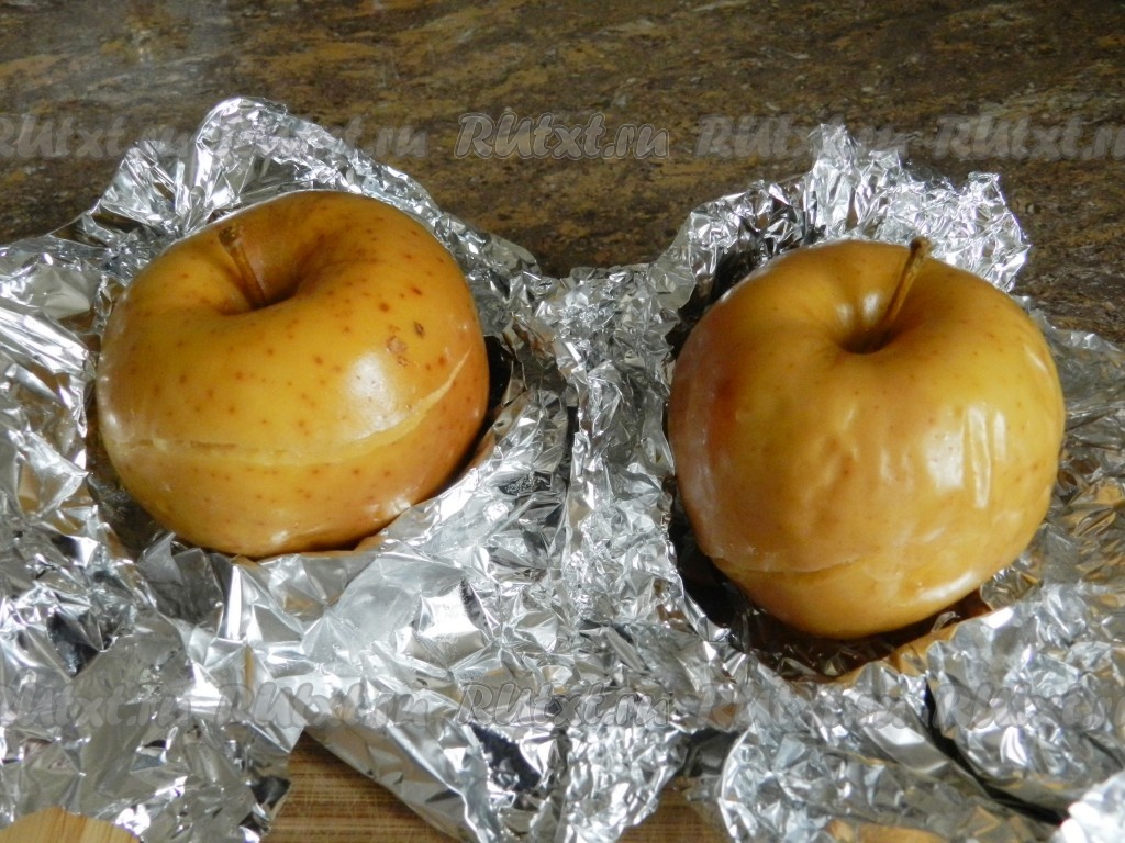 Яблоки вымыть, обсушить, завернуть в фольгу и запечь в разогретой до 190-200 градусов духовке в течение 30 минут.
