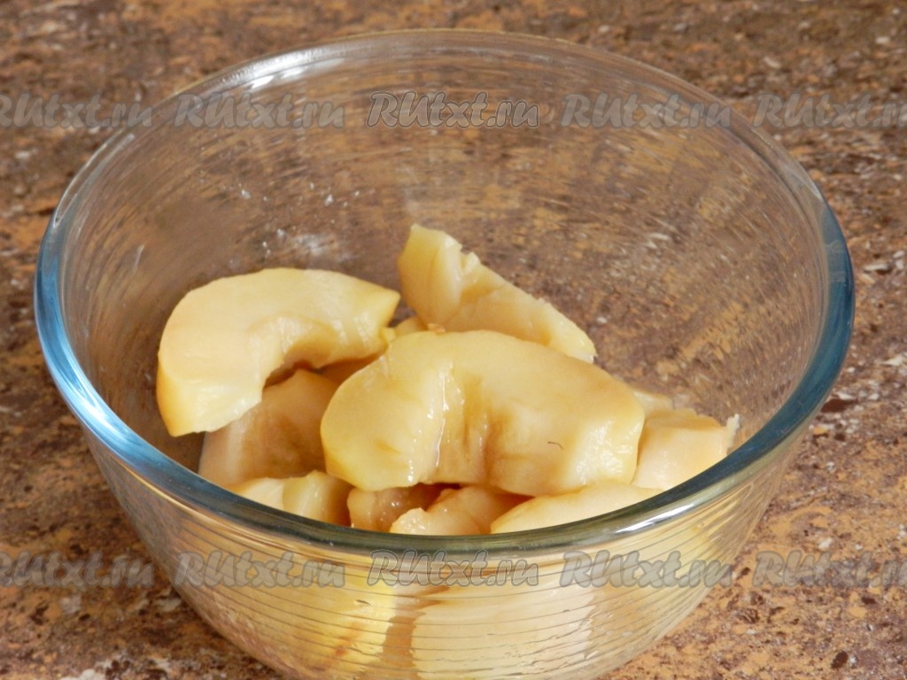 Печёные яблоки достать из духовки, развернуть, остудить, снять кожицу, удалить сердцевину, нарезать на дольки и сложить в глубокую ёмкость, в которой удобно будет взбивать погружным блендером.