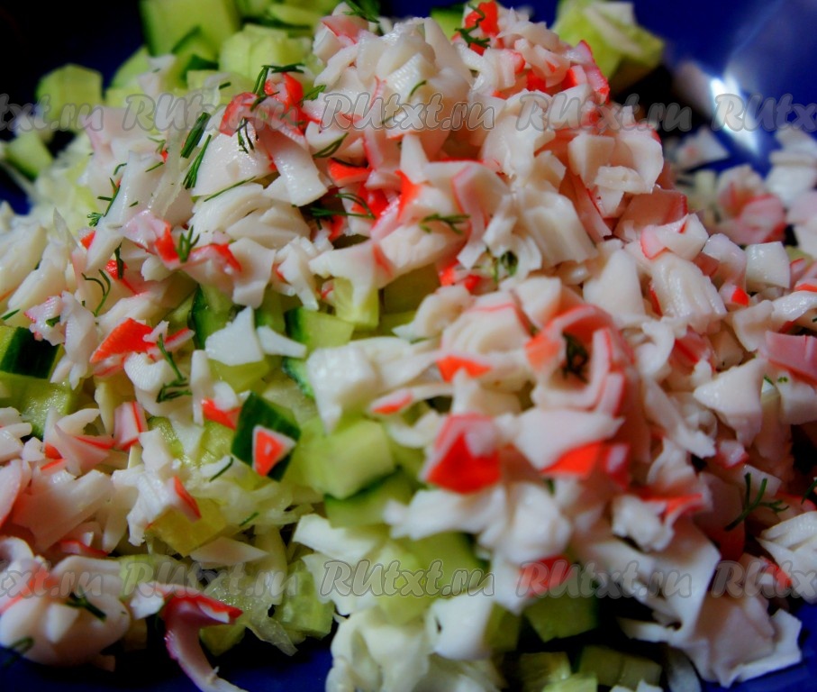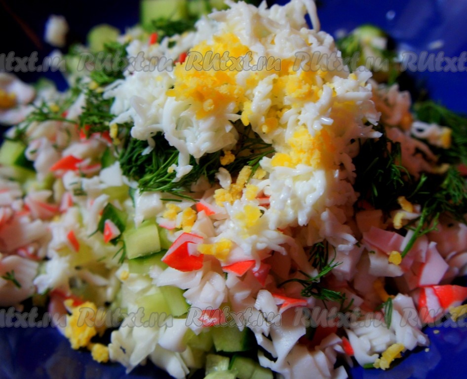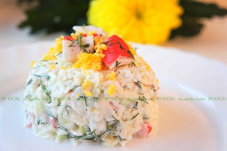 Нежный, красочный и очень вкусный салат из крабового мяса готов! Приятного аппетита! Кушайте с удовольствием!