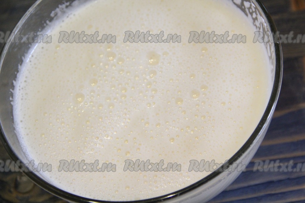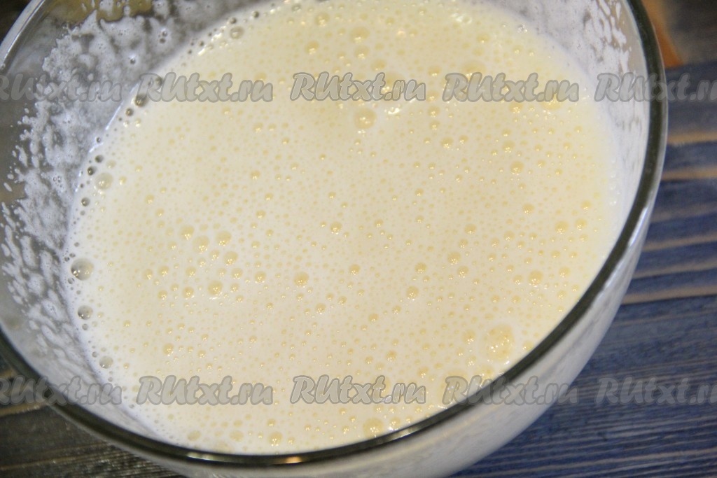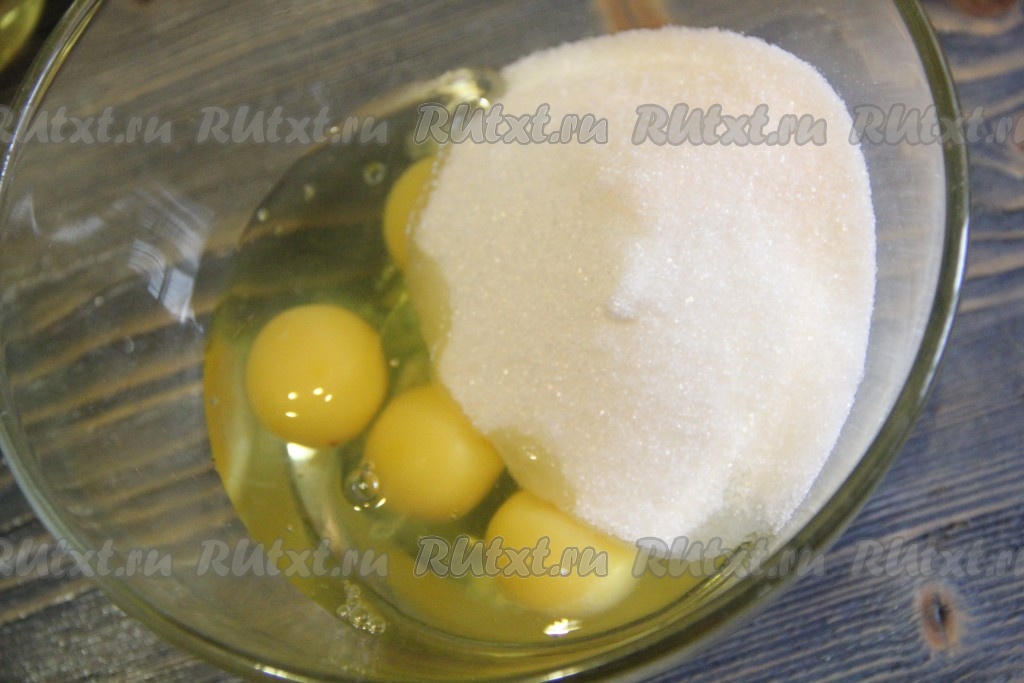 С помощью миксера хорошо взбить яйца с сахаром, смесь увеличится в объёме и посветлеет.