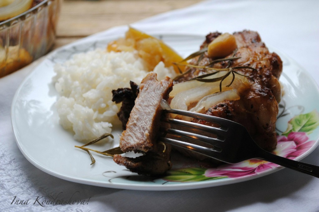 Свиная корейка на кости, запеченная в духовке, - вкусное и очень сытное блюдо, которое украсит любой праздничный стол. Подавать это наивкуснейшее мясо нужно в горячем виде с гарниром (в качестве гарнира у меня был рис, но его можно заменить на отварной картофель или картофельное пюре) или свежими овощами и зеленью. Обязательно попробуйте!