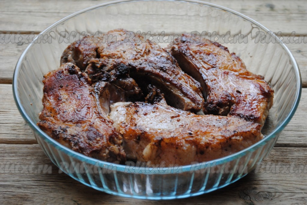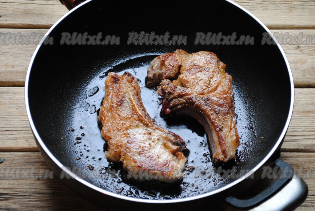 На мясе должна образоваться румяная корочка, благодаря которой при запекании весь мясной сок останется внутри, и мясо будет сочным и вкусным.