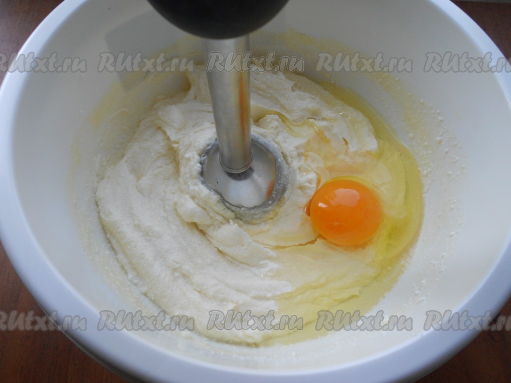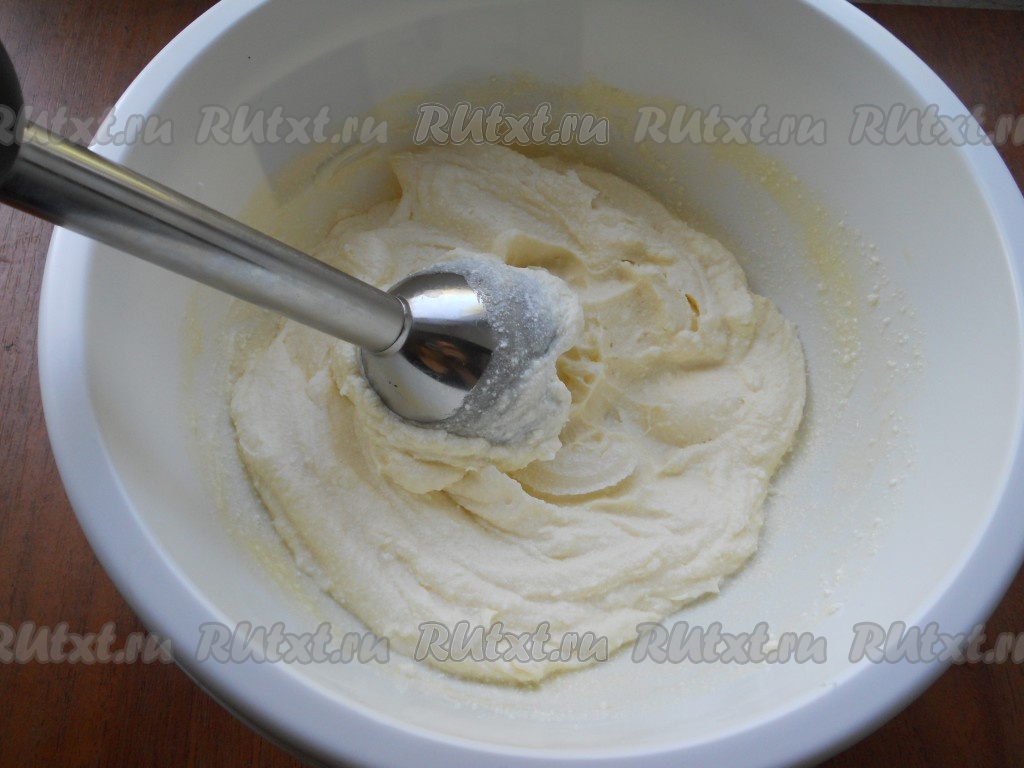 Взбить творожную массу погружным блендером до гладкой, однородной массы.